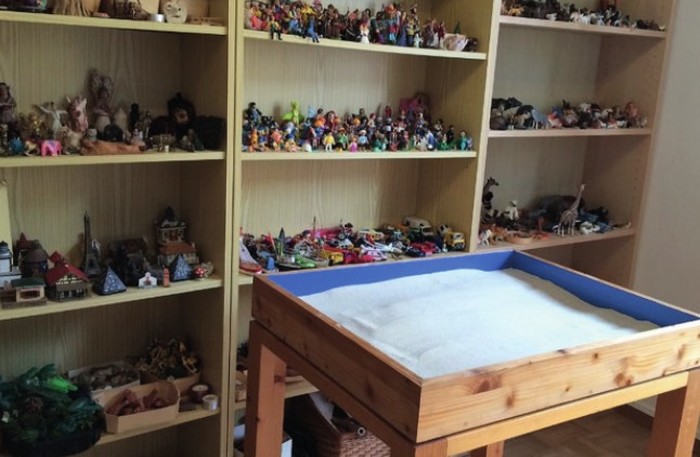 La personne est invitée à créer une image avec le sable et les objets. Celle-ci est vue comme une expression spontanée de certaines dynamiques intérieures qui ne sont pas ou pas encore accessibles à la conscience et à la parole. Les diverses scènes créées avec ce matériel sont l'expression d'un vécu personnel actuel ou plus ancien, rendu visible sous forme d'images. Entrer en contact avec ces contenus peut aider à les connaître, à les intégrer et ainsi à trouver de nouvelles